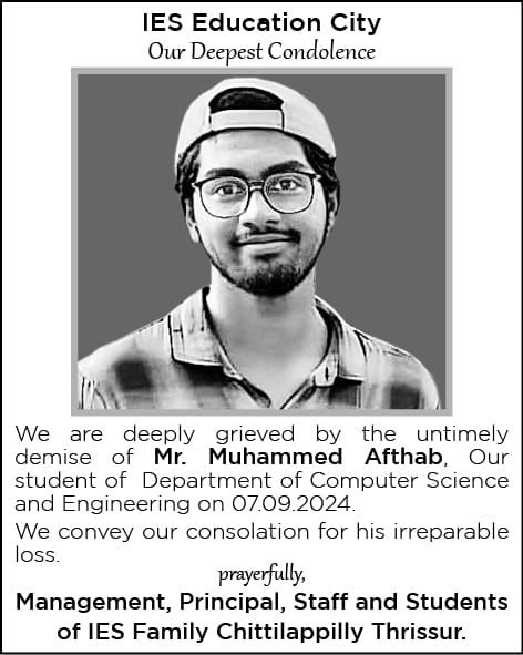 View MoreA Petition was sent to Chief Minister regarding the demise of Muhammed Afthab, student of S5 CSE due to the tragic road accident. It has been forwarded by the Chief Minister's office to District Police Chief, Thrissur for the appropriate action