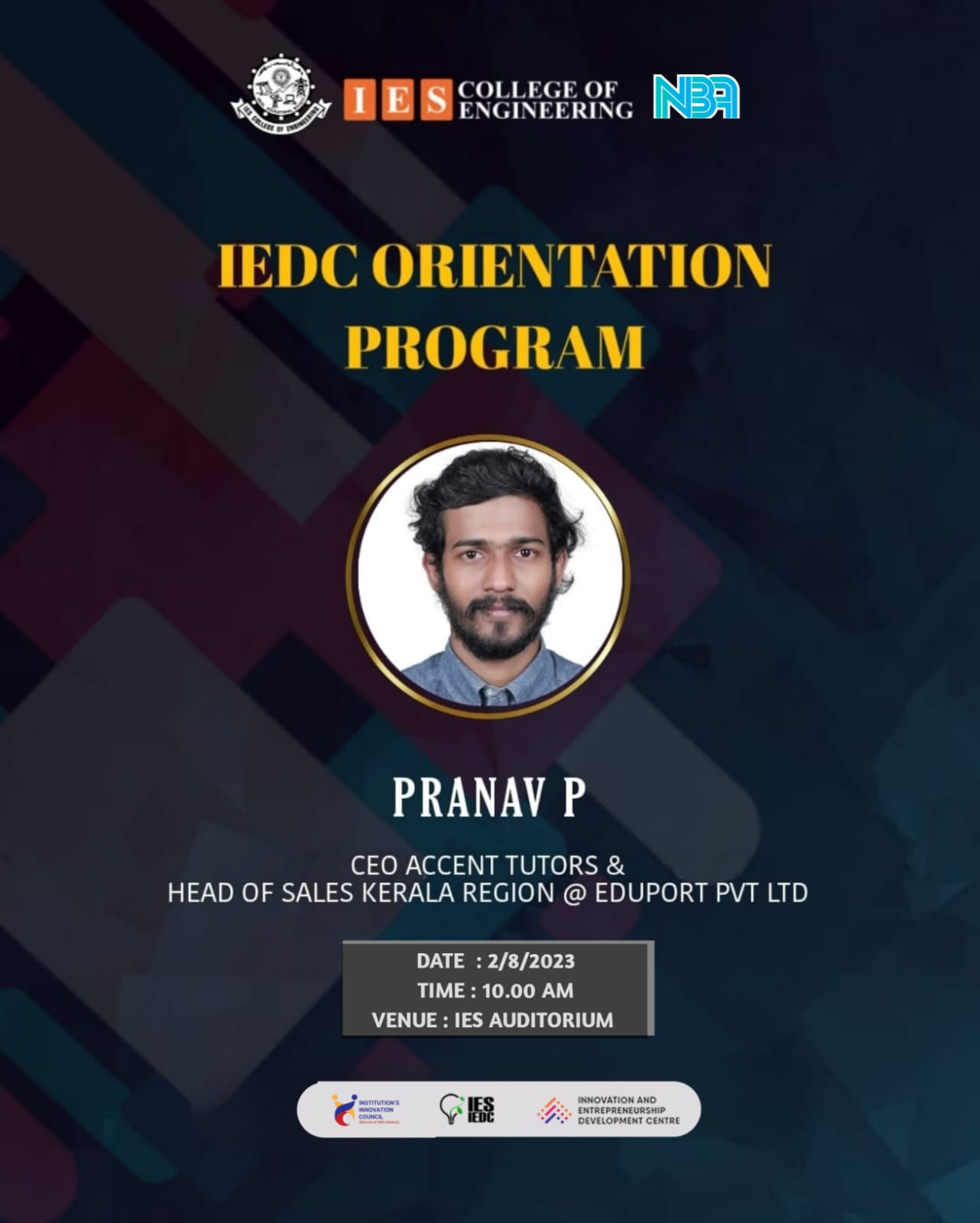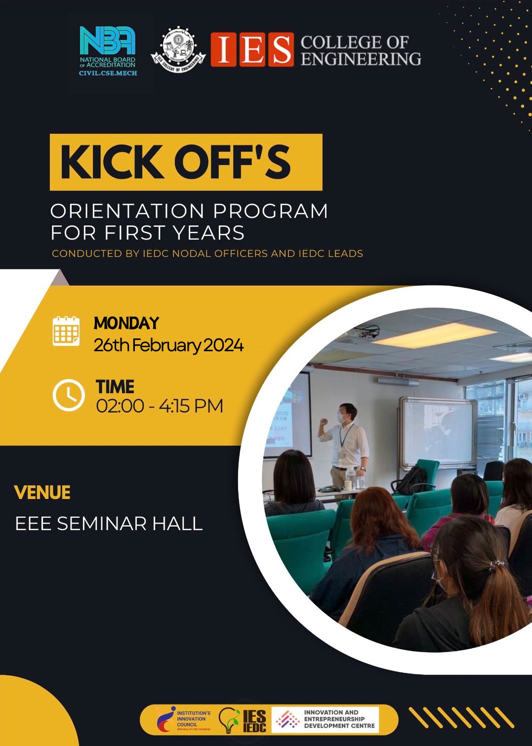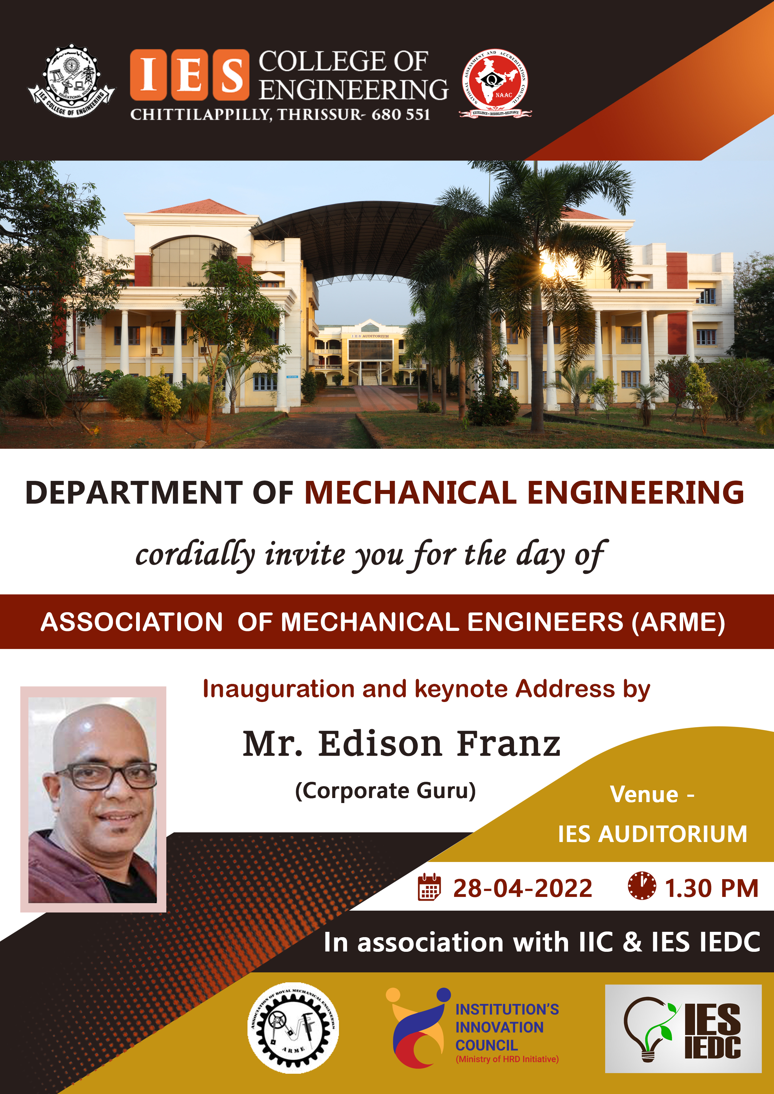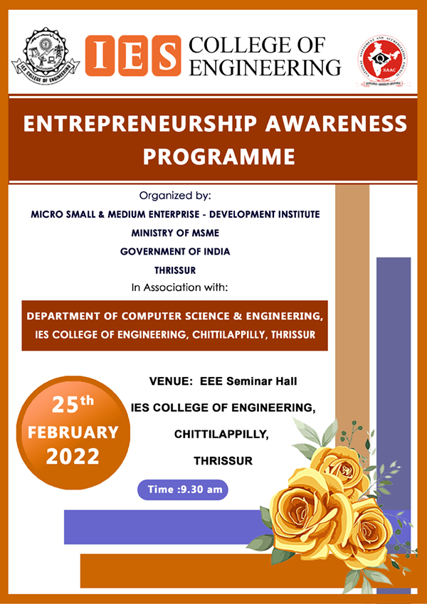 View MoreIES IEDC Start-up Bootcamp conducted on 7th and 8th November by Mr.Vishnu Nagaraj, CEO and Founder of Carve start-up Labs at IES Auditorium.