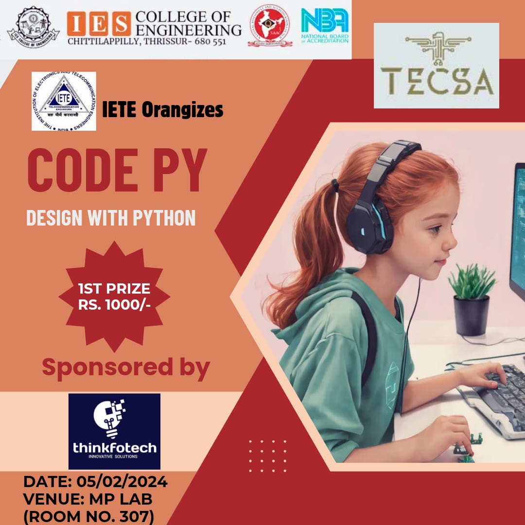 View MoreDepartment of Electronics and Communication Engineering , IETE in association with TECSA,IEDC,IIC.